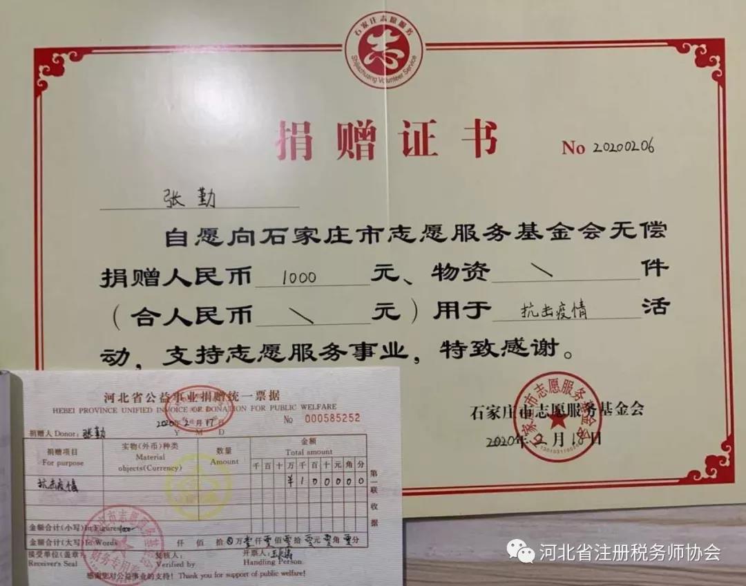 2、所長張勤在2月中旬看到疫情還在蔓延,看到那些遭受病毒折磨的同胞,那些堅(jiān)守在一線的‘戰(zhàn)士’。深感作為稅務(wù)師,就應(yīng)全力奉獻(xiàn)自己的力量,跟全國人民一起打贏這場戰(zhàn)役。隨后石家莊天擇稅務(wù)師事務(wù)所再捐款兩萬元用于新型冠狀病毒肺炎的疫情防控。