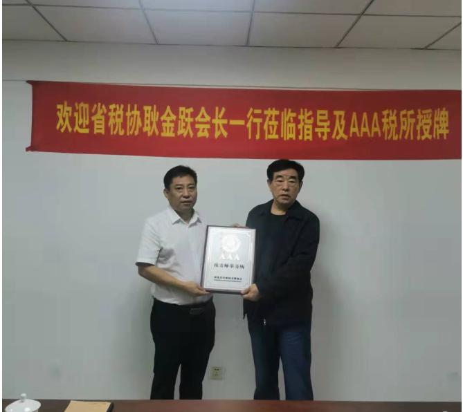 2021年9月26日,河北省稅務(wù)師協(xié)會(huì)耿金躍會(huì)長(zhǎng)一行三人蒞臨我所指導(dǎo)工作和AAA稅務(wù)師事務(wù)所授牌。