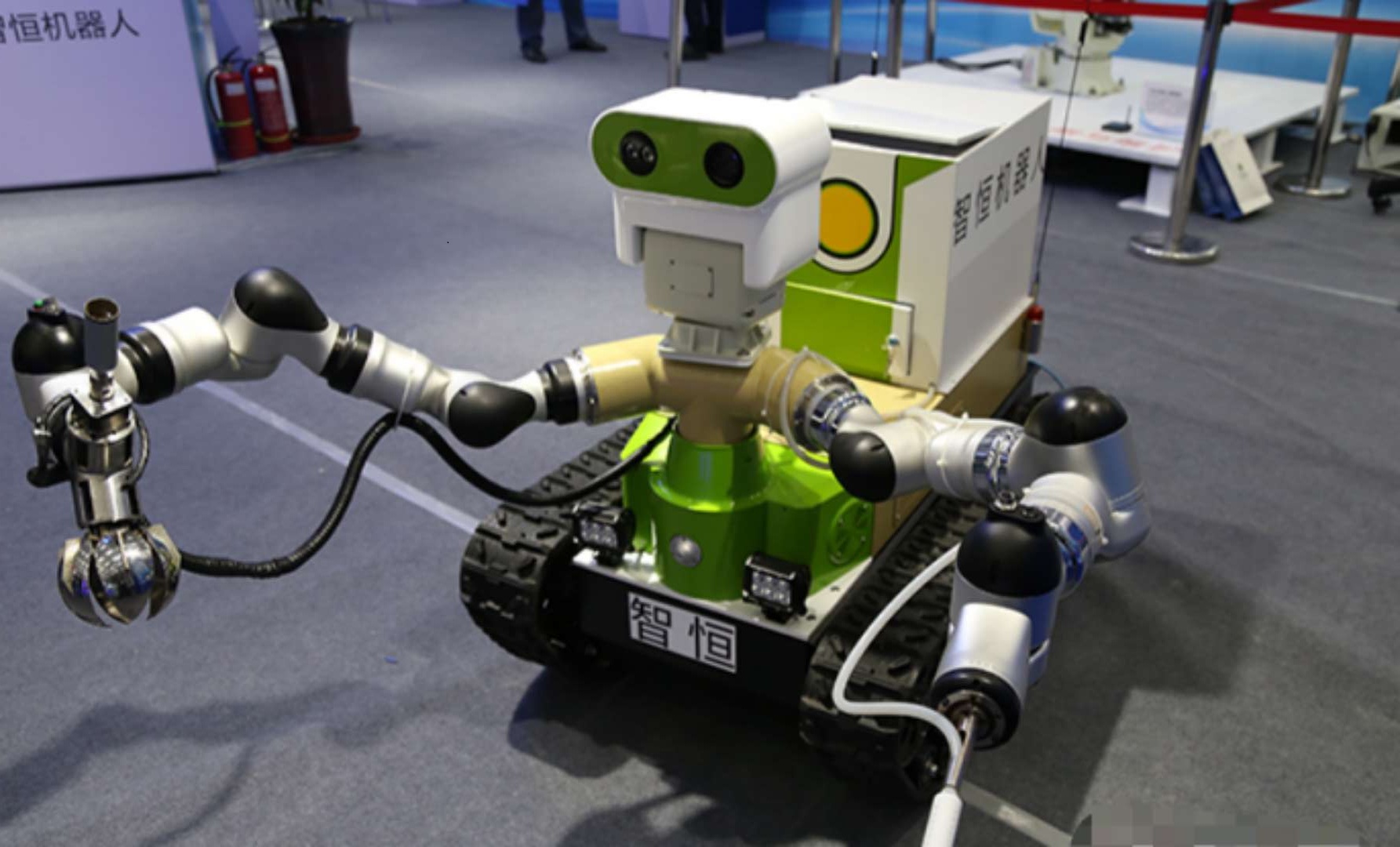 2018年“5·18”經(jīng)洽會大智移云展上的環(huán)保應急偵測特種機器人。