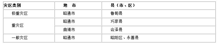 根據(jù)《云南魯?shù)?.5級(jí)地震災(zāi)害損失評(píng)估報(bào)告》(民函〔2014〕269號(hào))的規(guī)定,本通知所稱“受災(zāi)嚴(yán)重地區(qū)”是指極重災(zāi)區(qū)和重災(zāi)區(qū),“受災(zāi)地區(qū)”是指極重災(zāi)區(qū)、重災(zāi)區(qū)和一般災(zāi)區(qū)。具體受災(zāi)地區(qū)范圍見附件。